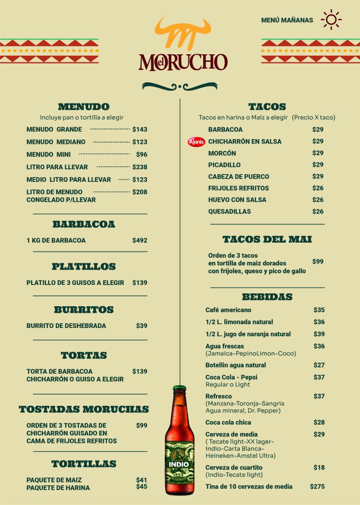 Aquí encontrarás los sabores que te harán regresar por más: menudo calentito, tacos mañaneros llenos de sabor, la mejor barbacoa y burritos irresistibles. Todo esto preparado con cariño y tradición, porque sabemos que la buena comida es el corazón de cada reunión.